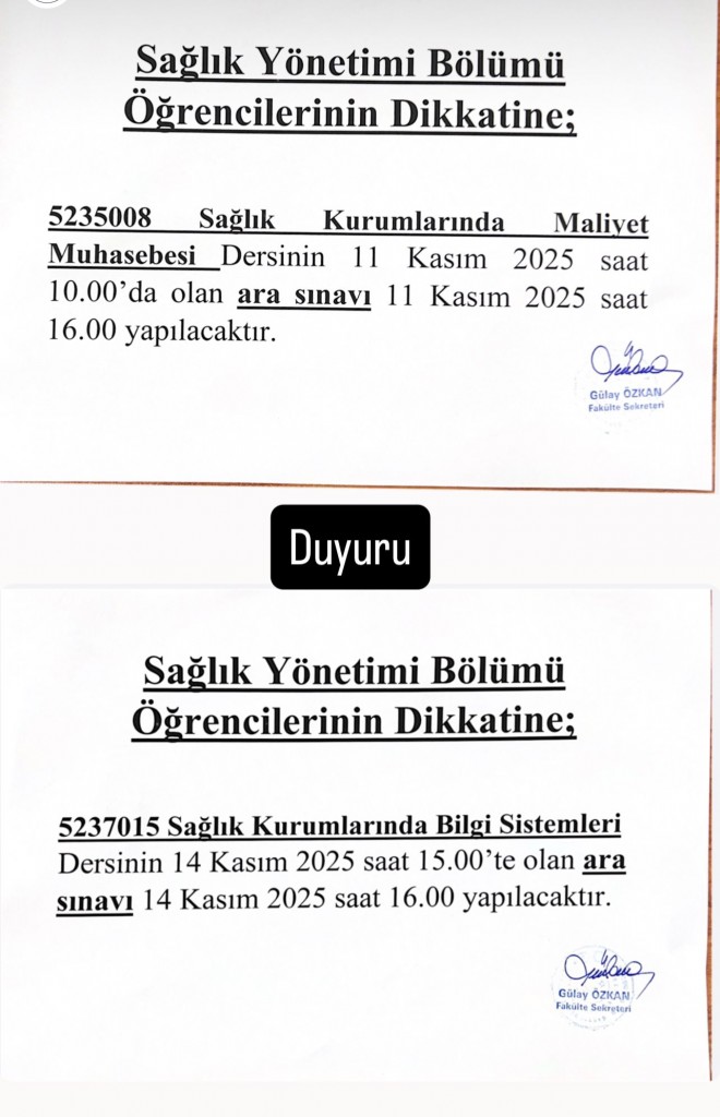 Sınav Değişikliği duyurusu