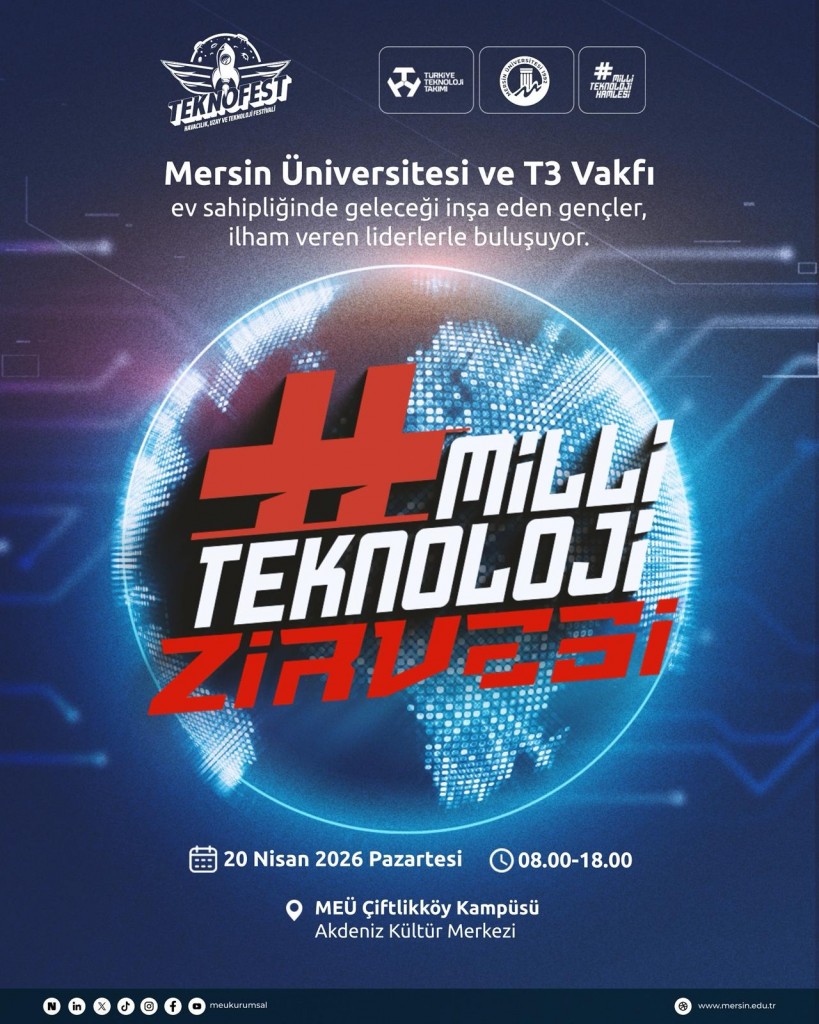 Geleceğin Teknolojileriyle Tanışmaya Hazır Mısın? 🚀Mersin Üniversitesi ve T3 Vakfı iş birliğiyle düzenlenen Milli Teknoloji Zirvesi, ilham veren liderler ve teknolojiye yön veren kurumları bir araya getiriyor!📅 20 Nisan 2026